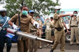 MELAKSANAKAN TUGAS DARI ATASAN (DIKES). SEHINGGA PENYEMPROTAN TIDAK MERATA HANYA